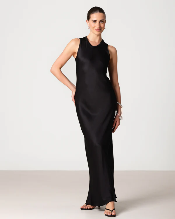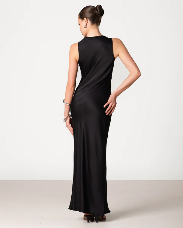 Sabrina Sleeveless Satin Maxi Dress | Black